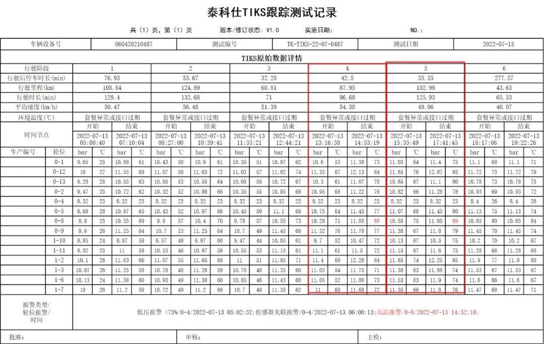 以上自动化温度预警设置是由泰凯英智能轮胎大数据应用平台V4.0综合分析得出,该大数据智能平台由泰凯英自主开发,是轮胎行业的首创,已获得软件著作权,在准确性与安全性上已经得到了市场验证和用户的肯定。